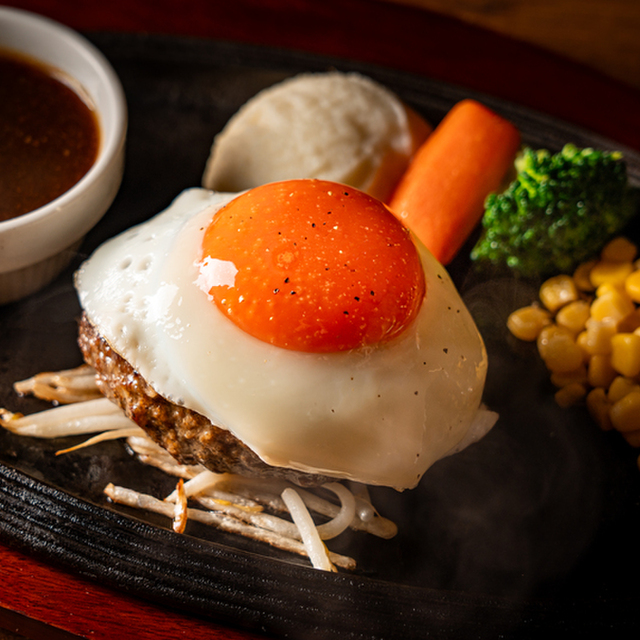 旨味と肉汁を詰め込んだ二つ重ねのハンバーグ。名付けてダブルハンバーグ。笑